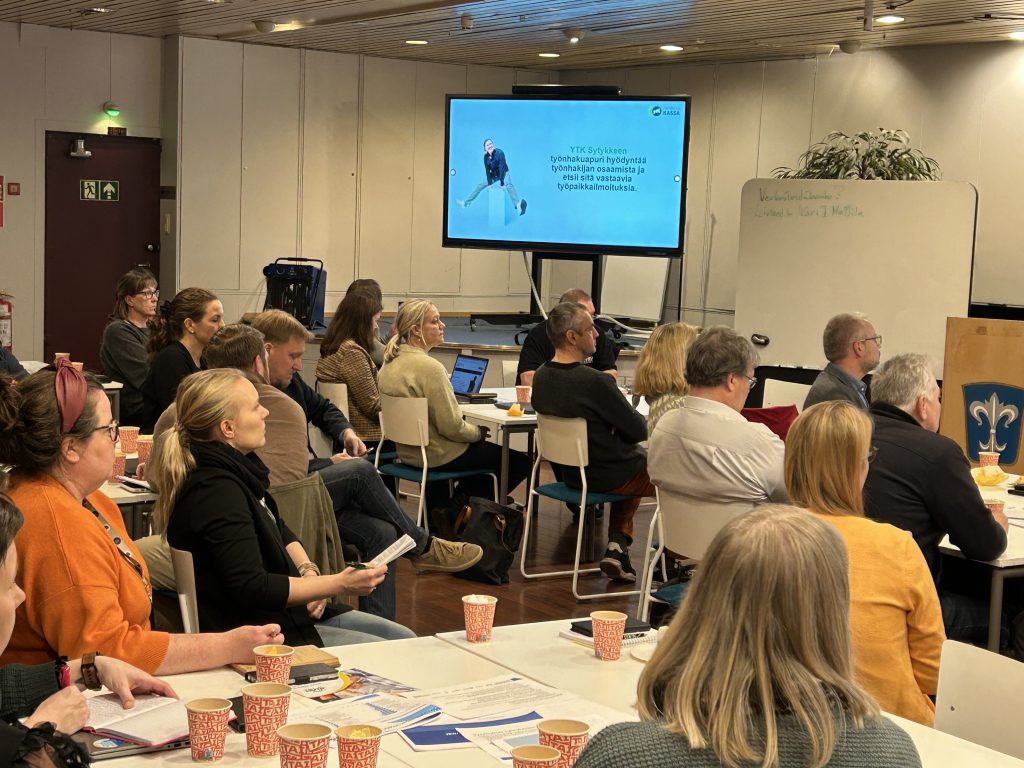 Esityksen jälkeisessä keskustelussa pohdittiin mm. piilotyöpaikkojen löytämistä. Saadaanko niistä tietää, kun kontaktoidaan yrityksiä? Näyttäisi, että monella yrityksellä on työllistämishaluja, mutta paikat avautuvat vasta, kun joku soittaa. Yrittäjä tarvitsee siis jonkinlaisen herätteen.
